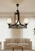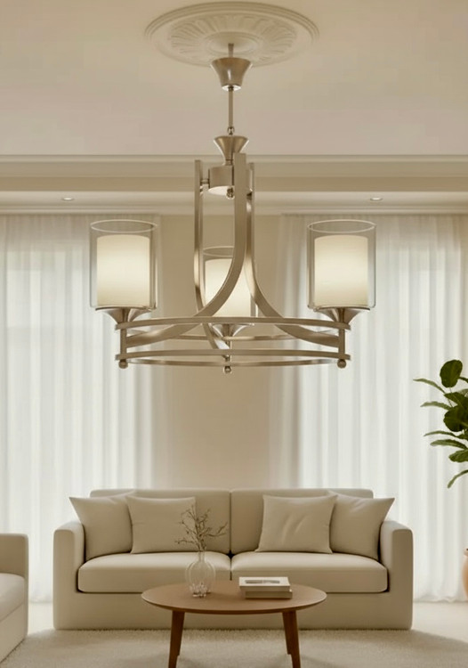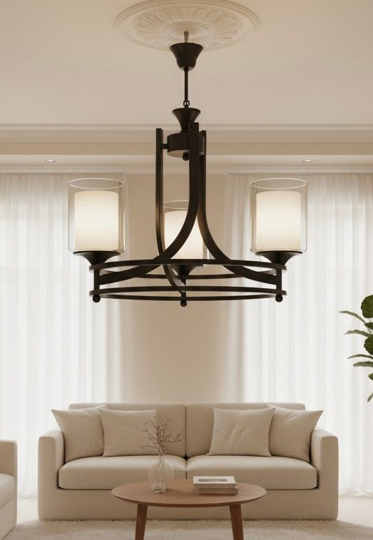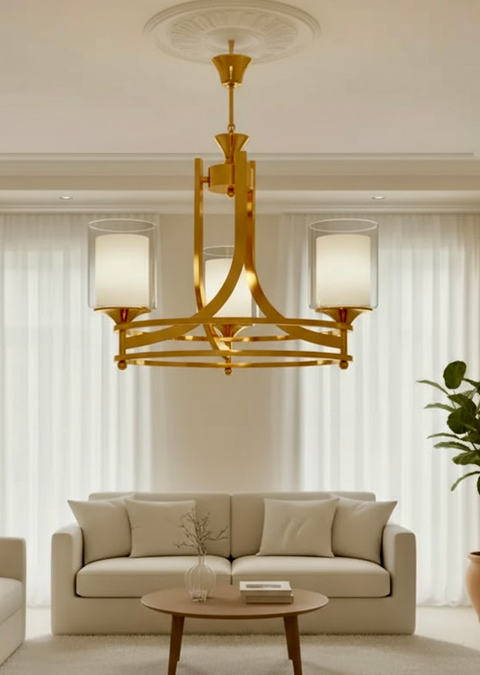 این لوستر، تلفیقی از زیبایی مدرن و کاربرد کلاسیک است. فرم هندسی قوسدار با سه شاخه چراغ شیشهای دودی یا شفاف که نور را با آرامش و یکنواختی در فضا پخش میکند.
