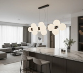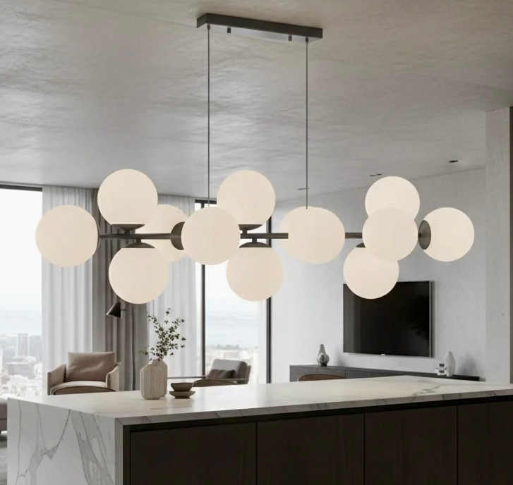 بدنه کشیده و حبابهای گرد مثل مولکولهای متصل، جلوهای لوکس و مدرن ایجاد میکند. اندازه بزرگ آن، مرکز توجه فضا خواهد بود.