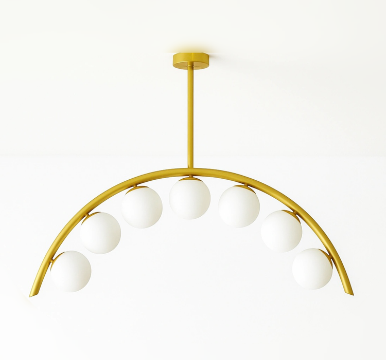 بدنهی طلایی مات این لوستر با انحنای هلالی، درخشش ملایمی داره که فضا رو لوکس و دنج نشون میده.