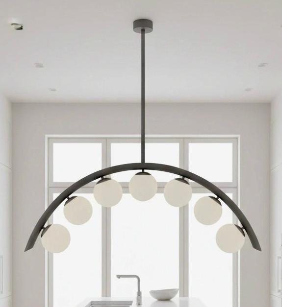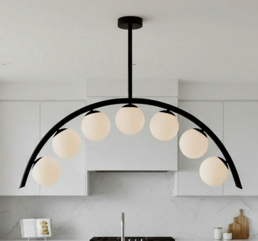 طراحی مدرن با هفت کره سفیدِ مات، نور یکنواخت و بدون خیرگی ایجاد میکنه.