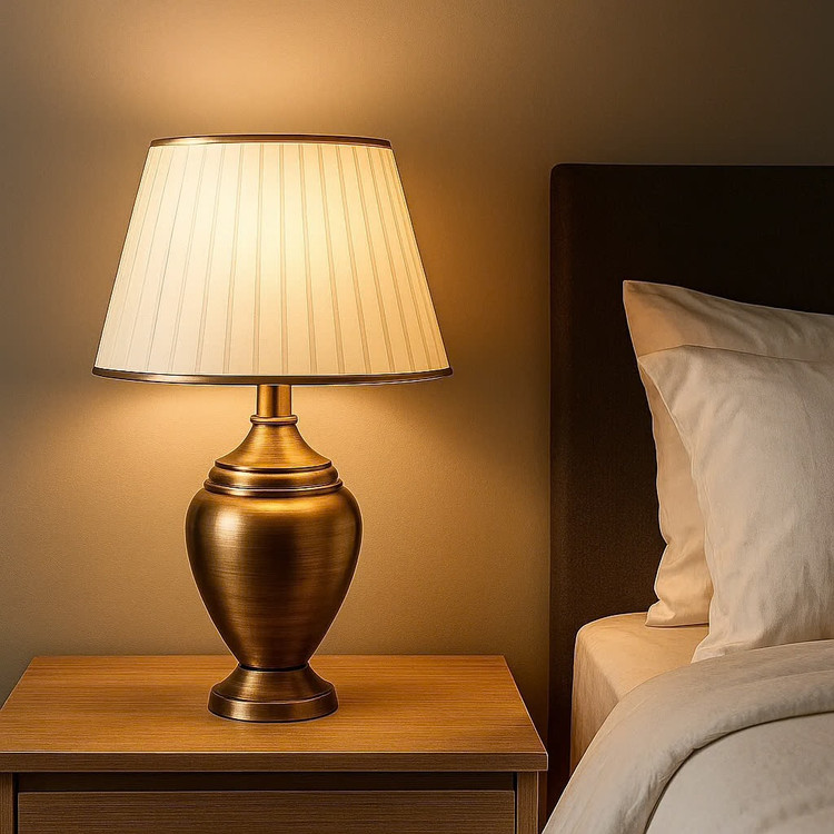 این آباژور رومیزی با طراحی کلاسیک و بدنهی طلایی براق، جلوهای گرم و لوکس به فضای اتاق شما میبخشد. شید کرم آن نوری ملایم و دلنشین پخش میکند که برای استراحت شبانه یا فضای دکوراتیو بسیار مناسب است. ترکیب رنگ طلایی و کرم، احساسی از آرامش و اصالت ایجاد میکند و با هر سبک دکوراسیونی هماهنگ میشود.