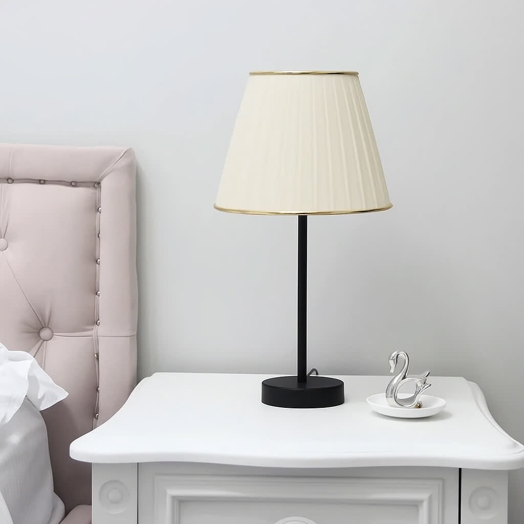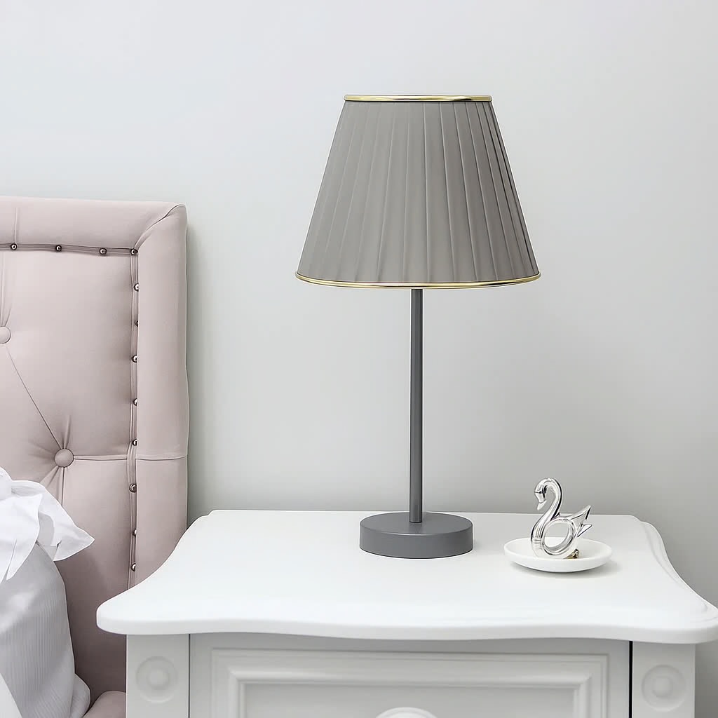 بدنه فلزی مقاوم در رنگهای متنوع (مشکی، طلایی، طوسی) همراه با شید پارچهای چیندار که نوری ملایم و دلنشین در فضا پخش میکند 🕯️
